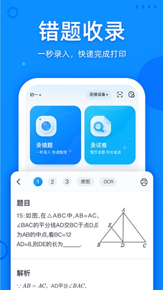 2、集错题拍搜,错题收录,名师诊断、同类题推荐等功能于一体