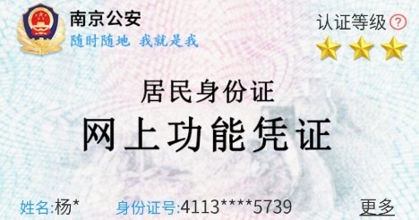 1、是居民身份证网上功能凭证,经公安部互联网+可信身份认证服务平台认证后,由南京市公安局颁发