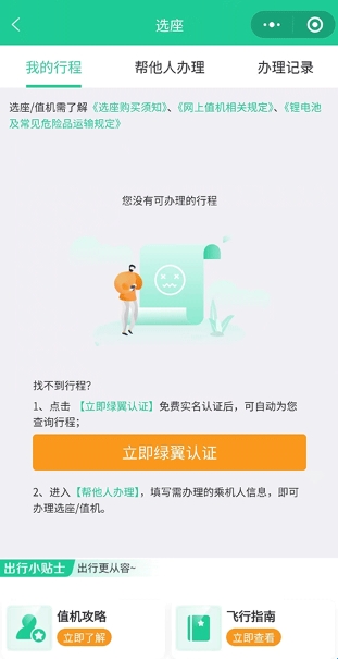 2、在服务中心选择“网上值机”或“选座/值机”入口,输入航班日期、乘机人姓名及证件号查询订单;