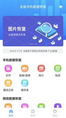 全能手机数据恢复app,一款可以帮你轻松恢复手机数据的软件。软件可以帮你一键扫描手机里删除的各种数据,包括照片、视频、音频等,用户可以选择自己需要的数据进行恢复,同时可以点击进行高清预览,满足你的使用需求。就算是QQ和微信里的数据也能进行恢复,快来下载体验吧!