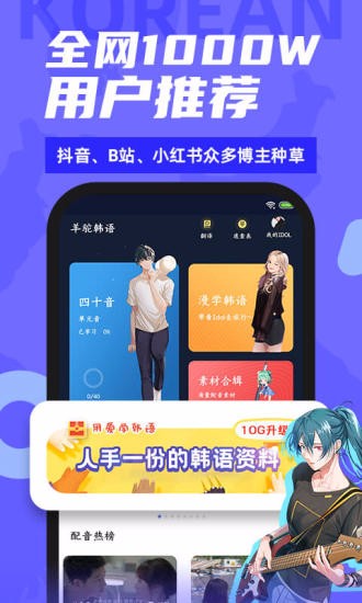 羊驼韩语app是一款综合韩语学习神器,可以帮助用户快速进行韩语入门外,也涵盖了各种学习课程,来全面满足各用户的韩语学习需求。而且,里面除了韩语自学课外,更有口语训练、对话训练,来帮助用户更好的知晓自己的学习掌握情况。