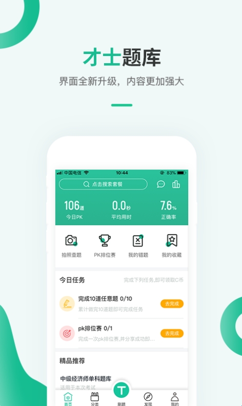 4、才士题库:才士题库全面收录近5年来历年真题,模拟题题库,每日一练,考点章节练习,考试高频考点,才士题库内含有上千万题库精准解析。