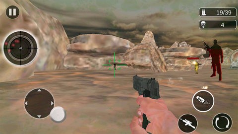 2、灵活操控角色自由移动,拿起武器任意切换使用,瞄准敌人并射击;