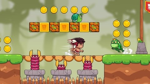 部落男孩冒险是一款英雄闯关冒险的游戏,这里面的玩法就像马里奥一样,只需要简单的控制就可以顺利的完成挑战,躲避怪物和陷阱,众多的道具任你使用,特别是飞行的,自带吸铁石,你能够得到路上所有的分数,这是考验你灵活度的时候,你需要顺利到达终点,得到奖励和荣誉。
