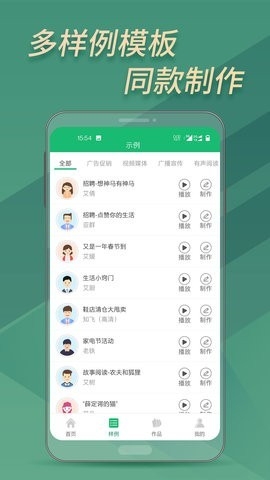 提供现成的样例模板,直接制作同款,时也可在样例的基础上修改重新合成。