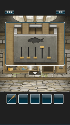 3、可以看到最右面有个柜子,根据最上面的鱼骨的上下位置,打开柜子,得到一个钓鱼竿。