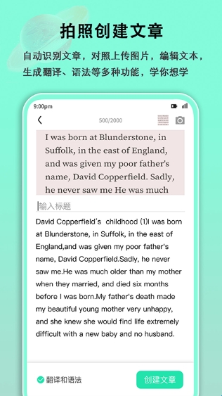 可拍照上传英文查询词典,也可用语法分析和翻译,方便用户学习。
