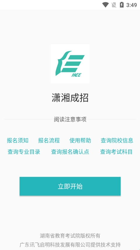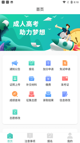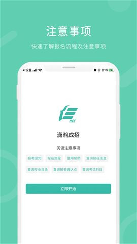潇湘成招app是专门为湖南省成人高校招生考试报名、信息查询的服务软件,用户通过app可以随时随地查看成人高考最新信息。软件还有许多非常实用的功能,包括成绩查询、材料递交、在线缴费、在线报名、打印准考证等,给用户提供非常便利的服务。让你的梦想能够通过自己的拼搏成功,软件内大家可以进行成人高考的报名,这里有非常详细的成人高考的资讯信息和相关政策,大家可以在这里轻松的报名,欢迎各位感兴趣的朋友们下载使用。