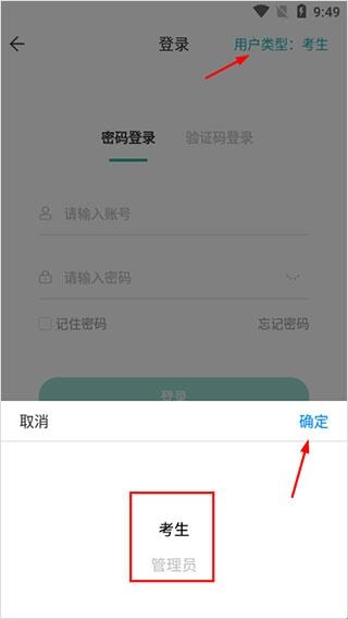 1、首先打开潇湘成招最新版本后,进入注册页面,选择用户类型考生以及管理员;