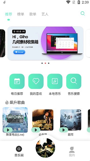 魔音Morin手机版首页入口提供创建歌单,要什么名称由你决定;推荐内容根据您的喜好,推荐更符合你口味的歌曲