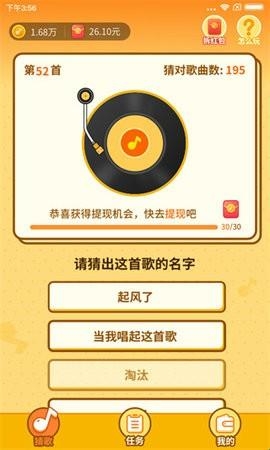 3、根据前奏进行猜歌答题,答对闯关就能领取红包,每日挑战趣味多多。