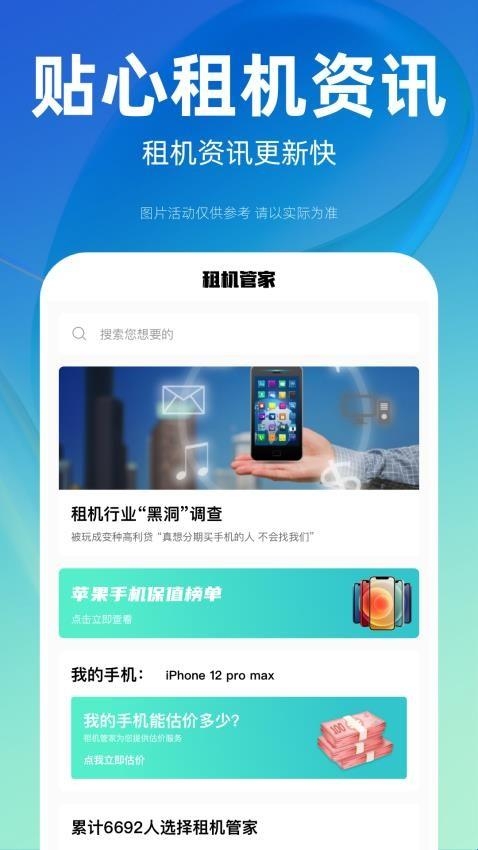 租机管家app,一款专注于租机行业的综合服务应用,通过租机管家app用户可以随时了解最新租机资讯,赢签到好礼。这款软件全面覆盖热门机型,权威科学估价,轻松租机,功能丰富,内容多样,为用户提供了舒适便捷的服务,欢迎感兴趣的用户下载体验。