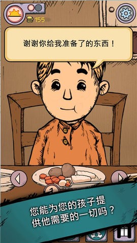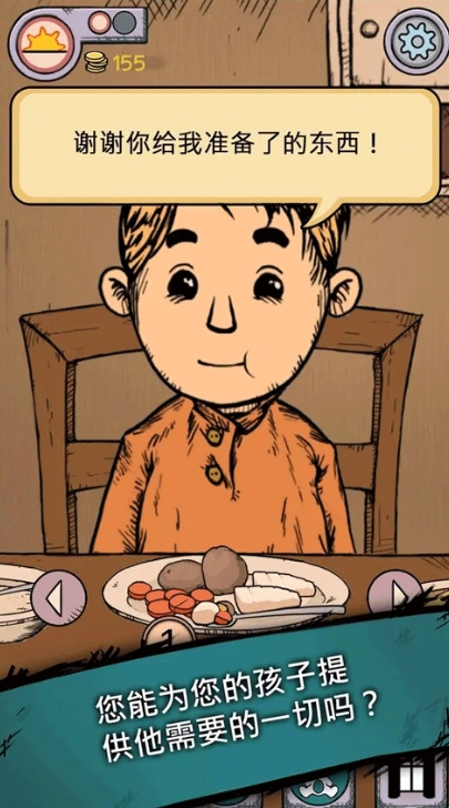 4、在游戏中搜集食物,工作赚钱,同时帮孩子做饭、缝补衣物,陪孩子一起玩。