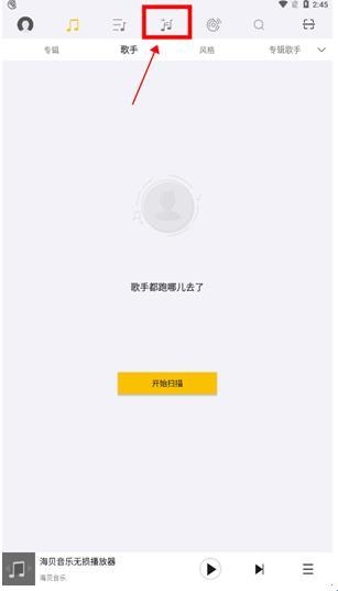 1、下载海贝音乐APP后打开软件,登录账号,点击上方中间图标
