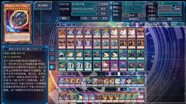 在海量卡池中编辑卡组,还有不同的禁限卡表可以选择,通过文本搜索、在效果上还是名字上均卡,搜索卡片的速度回非常快。
