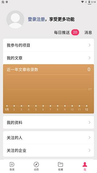 3、点击“我的”切换区域,这里不仅可以进行登录,也可以查看自己所发送文章的收录数。