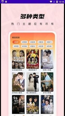 1、广泛的类型:软件内涵盖了多种类型短剧,包括爱情、悬疑、喜剧等,让用户得以根据个人口味选择和体验不同的题材。