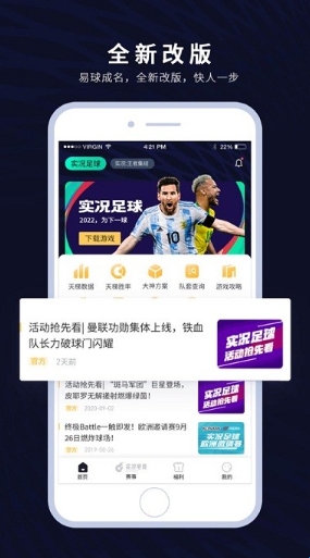 【快人一步,掌握内部资讯】易球成名Club为您提供一手游戏资讯。游戏版本信息、赛季数据、最新活动,只要您登陆APP,即刻抢先掌握,帮助您更轻松地完成实况传奇之路!