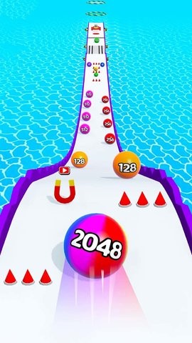 控制彩球穿越关卡:玩家需要通过触屏操作控制彩球进行移动和跳跃,穿越各种障碍物和关卡,同时收集宝石和道具。