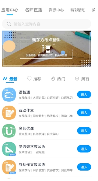 应用中心致力于打造多角色各学段完美整合的集成应用产品,提供最新上架、免费应用、最新优惠、使用排行榜等全方位多维度的教育应用展现。