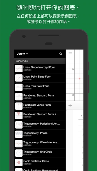 点击某条曲线,即可查看最大值、最小值和交点。点击灰色的兴趣点,可查看其坐标。单指按住某条曲线沿着它拖动,可查看坐标变化。