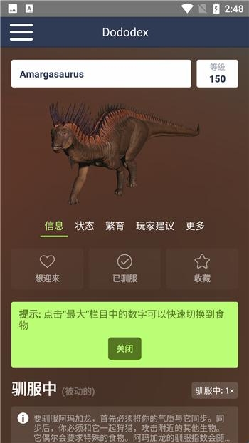 Dododex中文版是一款非常不错的游戏辅助类软件,软件功能十分强大,拥有生存进化驯服计算器和指南,不仅可以查看每种生物的属性以及武器的击晕等效果,而且还能够进行生存进化的计算,软件操作简单,容易上手,新手小白也能快速完美掌握。