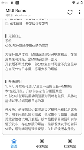 该应用界面简洁清新,包含MIUI官网、线刷位置、第三方ROM和小米商城的直达位置等实用功能。
