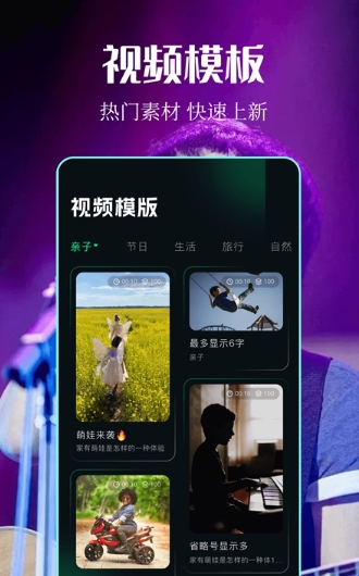 2、拥有丰富多样的视频模板素材,时尚热门,每时每刻都有新选择。