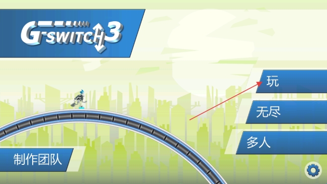 1、游戏初始界面,选择【玩】选项,进入《G-SWITCH-3》的闯关模式,开启跑酷挑战之旅。