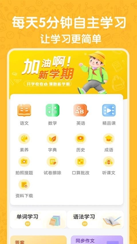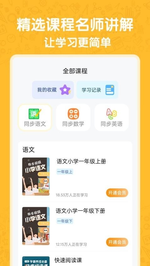 软件提供的各样课程与小学生上课教材同步,让学生线上线下结合学习。