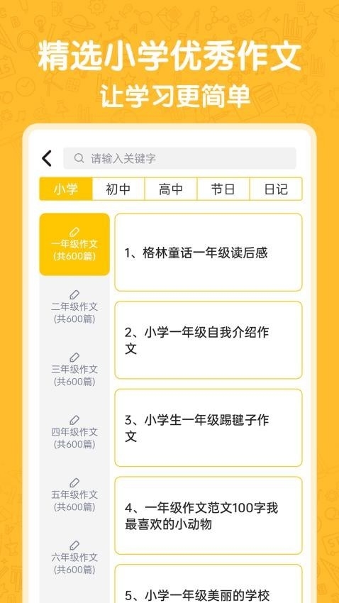 软件里面的小学课程、优秀作文都有着清晰的分类,方便用户查找学习。