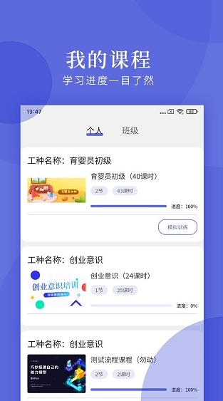 4、用户可以自由选择个人或班级进行培训学习,以便能更加高效的进行学习;