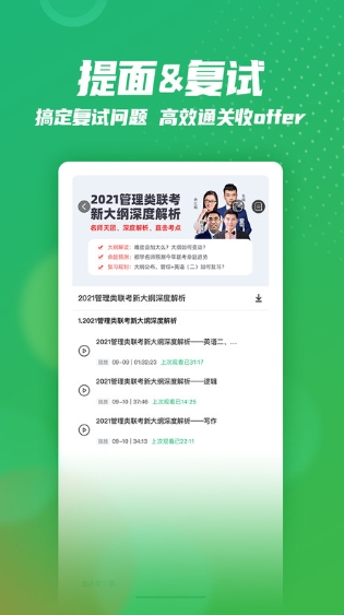 都学MBA是一款专门为考研学子们设计打造的教育学习类软件。软件汇集MBA/MPAcc/MEM/MPA/EMBA备考专家,拥有视频直播课程、海量题库、正版配套教材等,还收录了近五年的所有考研真题试题、模拟题题库、每日一练、考点章节练习、高频考点、准题库,可以帮助用户更好的备考。