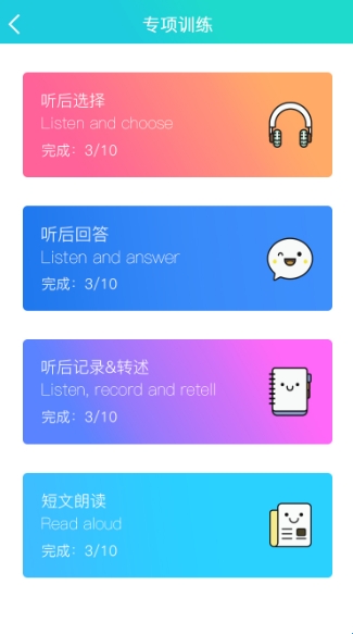 6、能够实时更新的口语训练话题,掌握更多最新的英语考题。