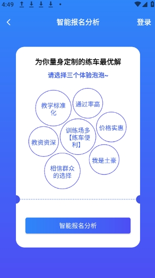 1、登录app后在首页处点击【报名咨询】,然后打开智能报名分析页面中根据自己的需求情况选择适合自己的方案进行报名