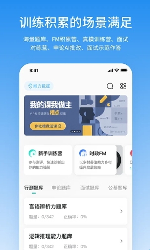 网罗海量整卷、免费在线模考、视频解析课;FM晨读音频和文稿,轻松积累热点;面试对练答题点评一体,准确把握面试思维。