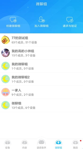 每个账号可以创建和加入多个微聊组,但是每台设备只能绑定至一个微聊组。