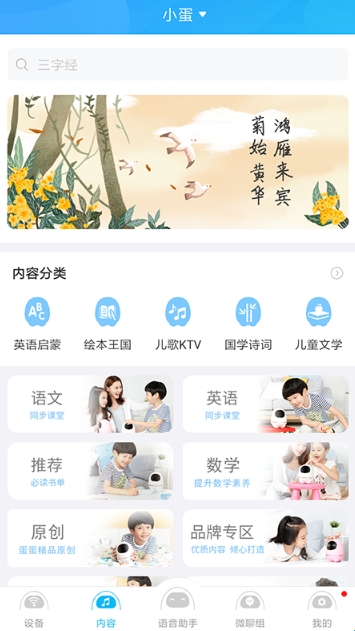 3、分成设备、内容、语音助手、微聊、设定五个版块。