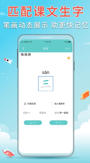 2、小学语文识字:系统学习汉字,包含笔顺、发音、部首、笔画、结构等多个内容。