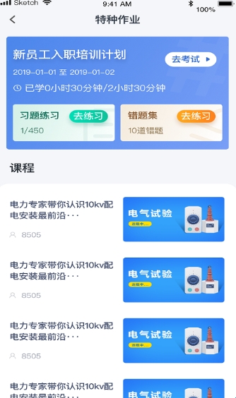4、涵盖进网续期学习培训、全真习题、模拟考试、续期考试四大模块;续期电工可以通过手机完成全部培训和考核流程,节省电工的车马劳顿时间和金钱。