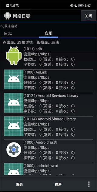 1、打开网络日志app,用户可以在应用中知晓自己的软件使用网络的情况;