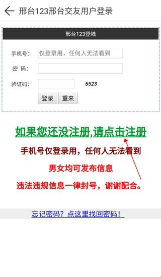2、输入手机号可以登录,如果还没注册,点击下方的绿色字体“点击注册”。
