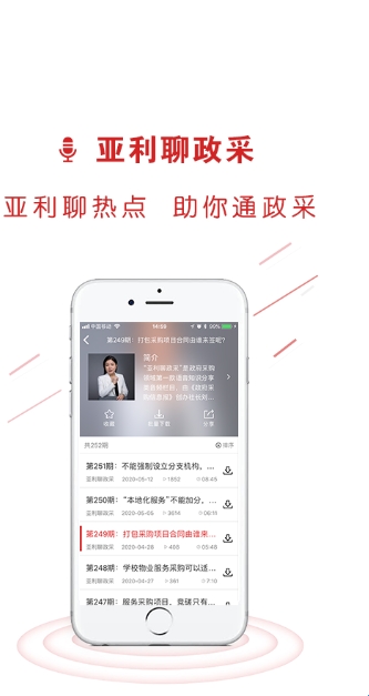 每周二收听由政府采购信息报社创办社长刘亚利,对近期政府采购领域热点问题或法规的精彩讲解。政采业界首款音频产品。