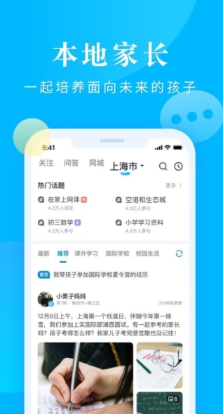 找不到合适的人咨询?想看过来人的经验总结?校内校外的话题一应俱全,跟同年龄、同地区的家长在线交流,快速找到组织。