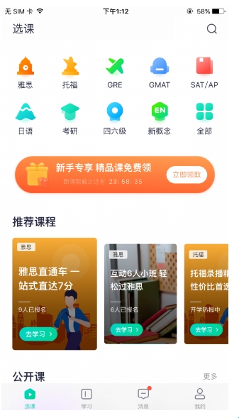 2、新人可以领取免费课程,能够体验名师的直播课堂;