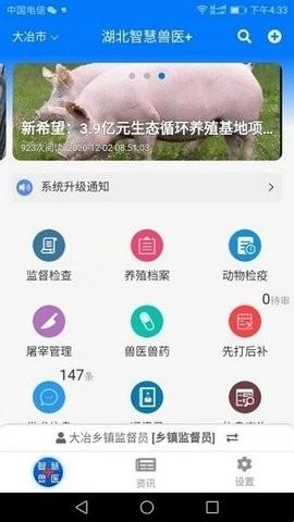 湖北智慧兽医app是一款专门为湖北地区从事畜牧业、养殖业人员打造的动物卫生监督综合管理平台,软件拥有最新的市场资讯、在线办理业务、建立养殖档案、动物检疫申报、屠宰管理、备案车辆查询等多种功能,非常实用,用户使用起来也很方便。