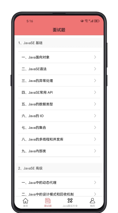 app中的题目涵盖了Java基础知识、常见框架(如Spring)、多线程、数据处理等多个方面,适合不同水平的用户进行学习。