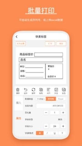 4、批量打印:支持批量打印标签,批量打印时可设置自动序列号,或者上传excel数据,录入序列号。
