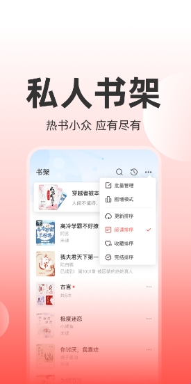 1、支持阅读背景以及字体等设置,还有书架帮你便捷管理,支持多种排行榜