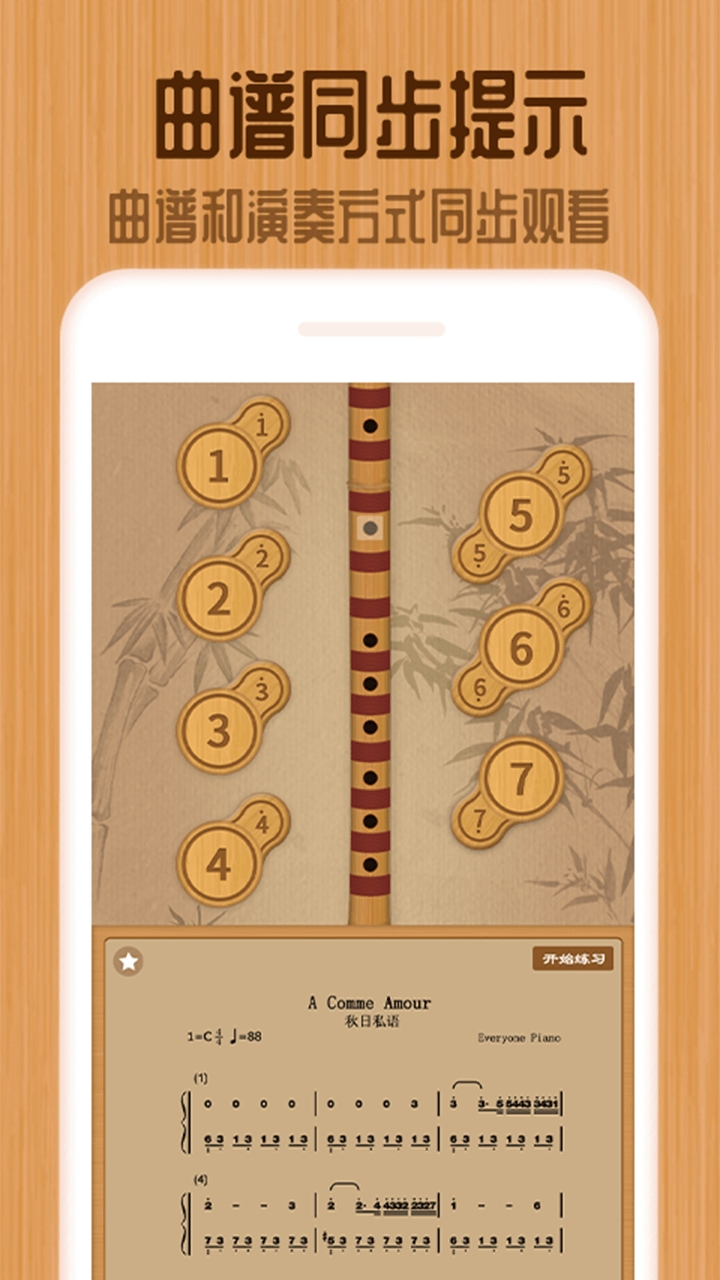 1、同步学笛子谱:逐一音符教你认谱,轻松学会笛子曲谱,没有音乐基础也能玩。